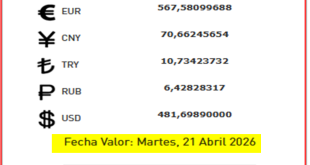 BCV. Tipo de cambio de referencia para transacciones desde el sábado 18 al lunes 20 de abril