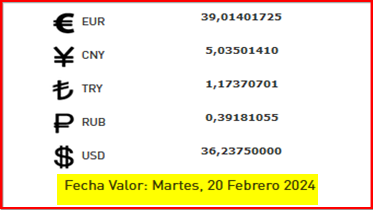BCV. Tipo de cambio referencial para transacciones del martes 20 de febrero de 2024 19 de febrero de 2024 - 4:47 pm Economia, Noticias 1,375 Vistas 2024-02-19 Javier Caceres Compartir Facebook Twitter LinkedIn Pinterest