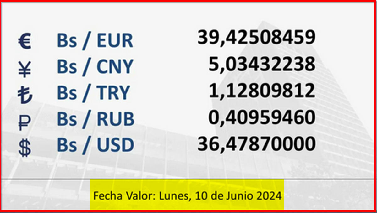 Tipo de cambio referencial para transacciones del sábado 8 al lunes 10 de junio de 2024 07 de junio de 2024 - 7:05 pm Economia, Noticias 1,225 Vistas BCV tipo de cambio 2024-06-07 Javier Caceres Compartir Facebook Twitter LinkedIn Pinterest