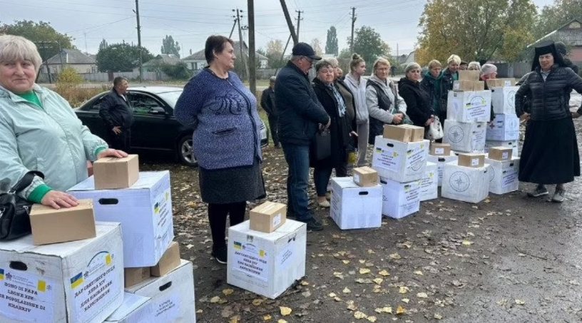 Camiones cargados con artículos de primera necesidad parten regularmente de esta iglesia de Roma y, en los últimos días, han llegado a Járkov paquetes blancos con las banderas del Vaticano y Ucrania y la inscripción, tanto en italiano como en ucraniano, «regalo del Papa León XIV al pueblo de Járkov» con conservas, aceite, pasta, carne y productos de limpieza.