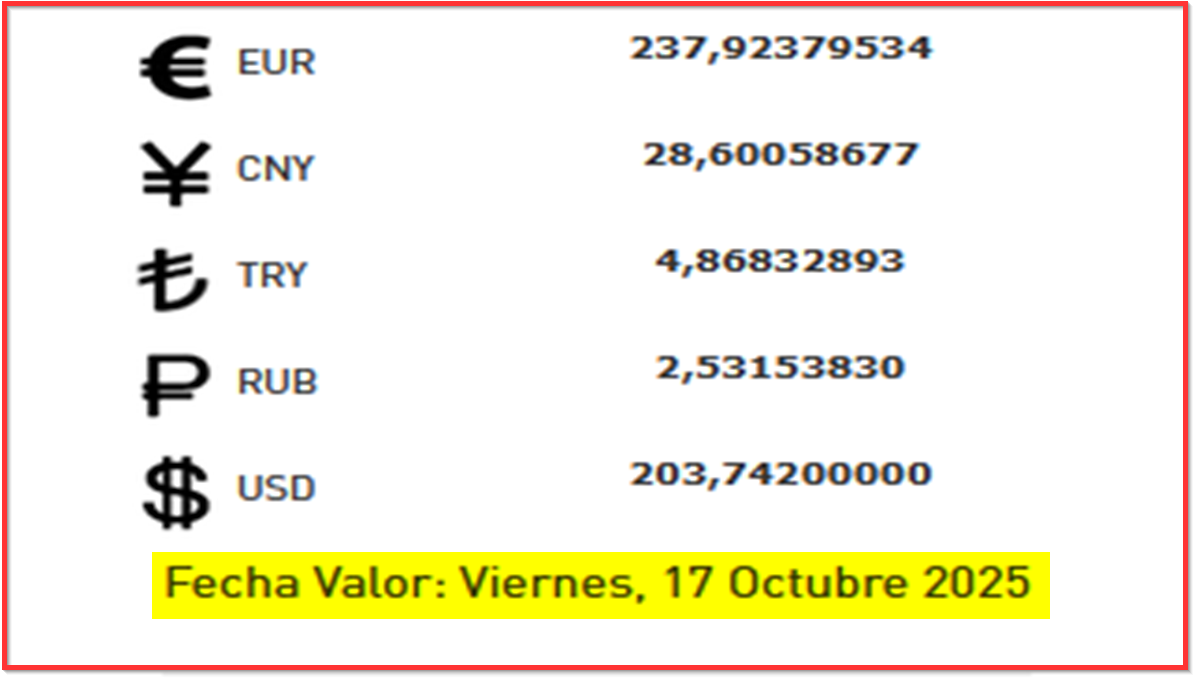 BCV. Cambio oficial referencial para transacciones del viernes 17 de octubre de 2025 16 de octubre de 2025 - 4:01 pm Economia, Noticias 4,182 Vistas 2025-10-16 Javier Caceres Compartir Facebook Twitter LinkedIn Pinterest