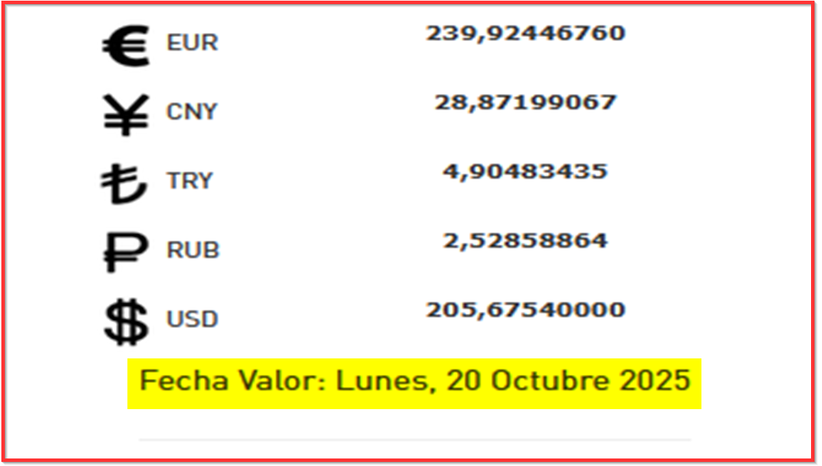 BCV. Cambio oficial referencial para transacciones desde el sábado 18 al lunes 20 de octubre de 2025 17 de octubre de 2025 - 4:53 pm Economia, Noticias 4,649 Vistas 2025-10-17 Javier Caceres Compartir Facebook Twitter LinkedIn Pinterest