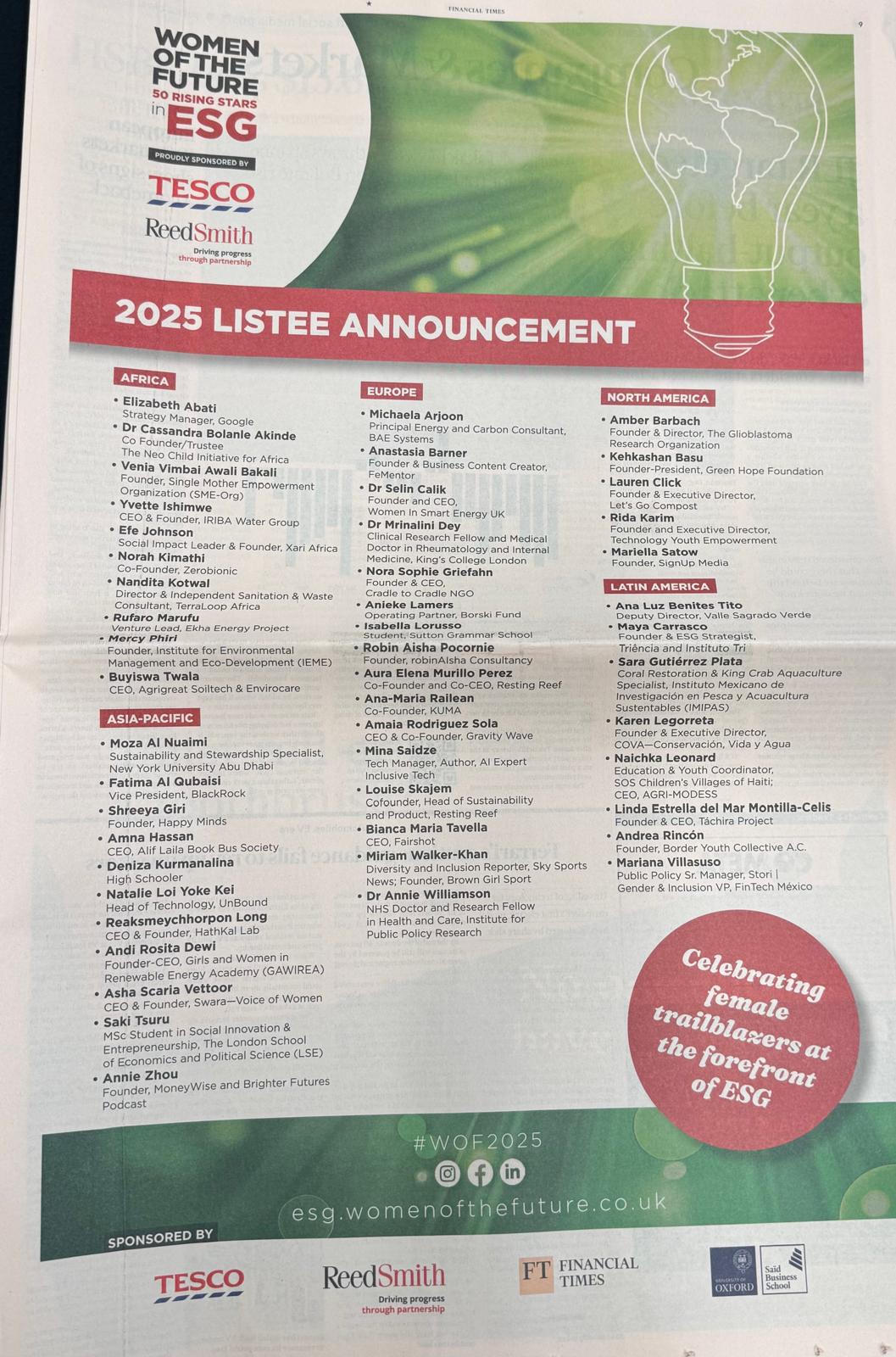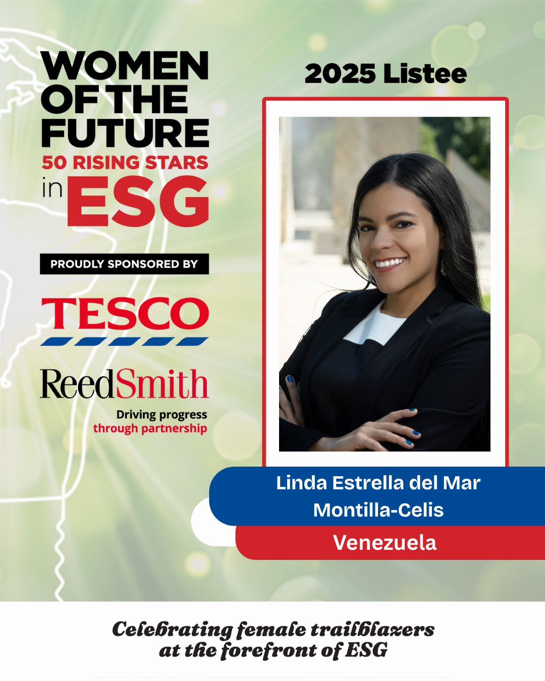 El reconocimiento celebra a 50 mujeres jóvenes de todo el mundo que están liderando transformaciones positivas en los campos ambiental, social y de gobernanza (ESG, por sus siglas en inglés). Linda Montilla Celis es la única venezolana y una de solo ocho mujeres latinoamericanas incluidas en esta edición.
