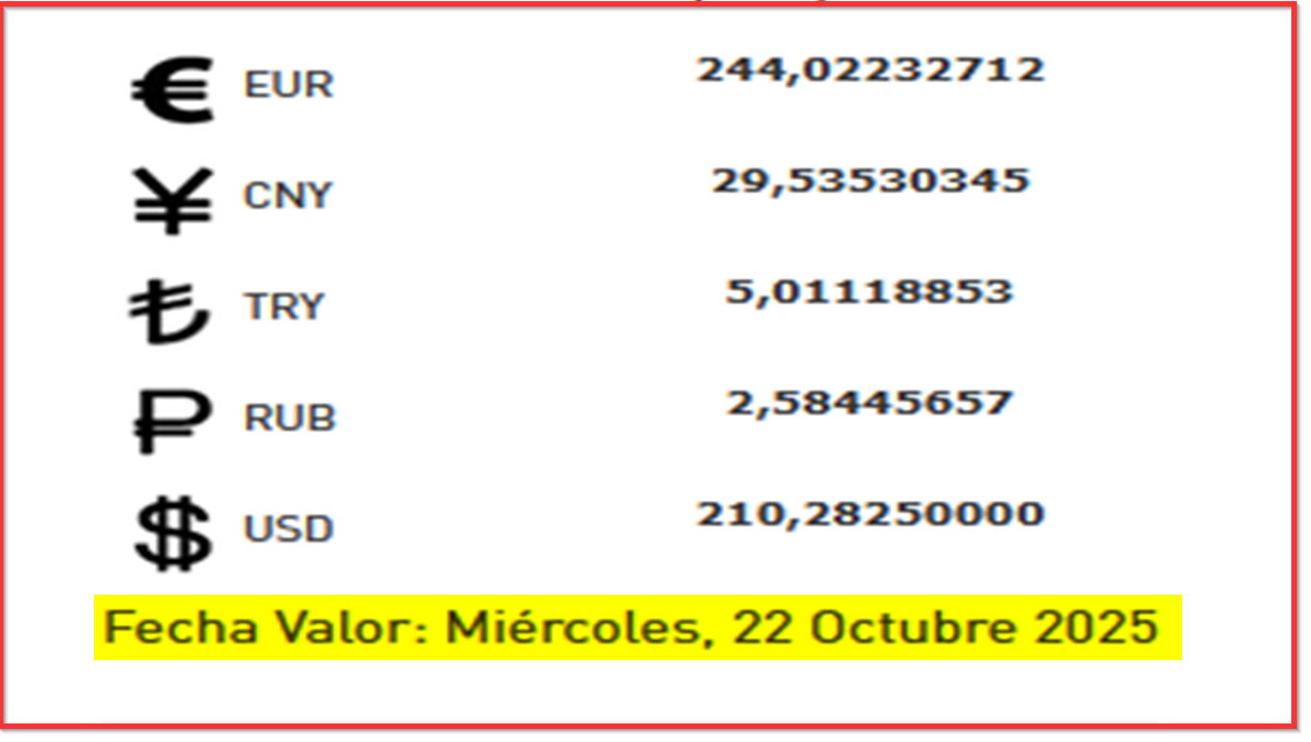 BCV. Cambio oficial para transacciones del miércoles 22 de octubre de 2025 21 de octubre de 2025 - 8:03 pm Economia, Noticias 4,572 Vistas 2025-10-21 Javier Caceres Compartir Facebook Twitter LinkedIn Pinterest