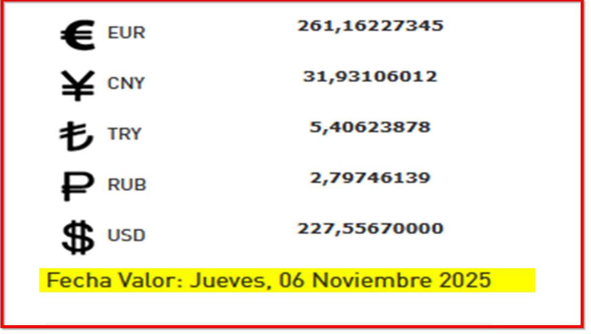 BCV. Cambio oficial para transacciones del jueves 6 de noviembre de 2025