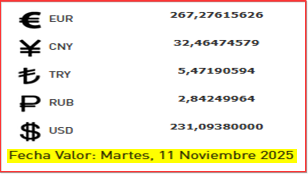 BCV. Cambio oficial para transacciones del martes 11 de noviembre de 2025 10 de noviembre de 2025 - 5:02 pm Economia, Noticias 4,723 Vistas 2025-11-10 Javier Caceres Compartir Facebook Twitter LinkedIn Pinterest