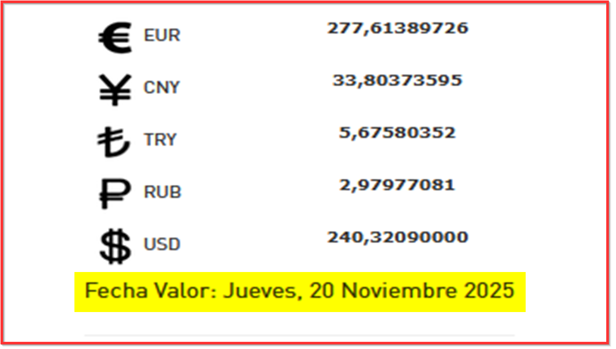 BCV. Cambio oficial para transacciones del jueves 20 de noviembre de 2025 19 de noviembre de 2025 - 4:51 pm Noticias 1,003 Vistas 2025-11-19 Javier Caceres Compartir Facebook Twitter LinkedIn Pinterest