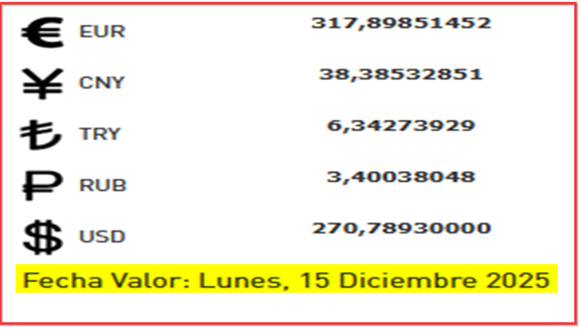 BCV. Cambio oficial para transacciones desde el sábado 13 al lunes 15 de diciembre 2025 12 de diciembre de 2025 - 6:08 pm Economia, Noticias 7,416 Vistas 2025-12-12 Javier Caceres Compartir Facebook Twitter LinkedIn Pinterest