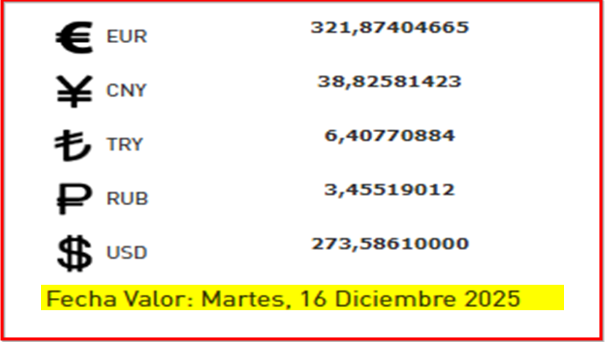 BCV. Cambio oficial referencial para transacciones del martes 16 de diciembre de 2025 Javier Caceres hace 15 horas