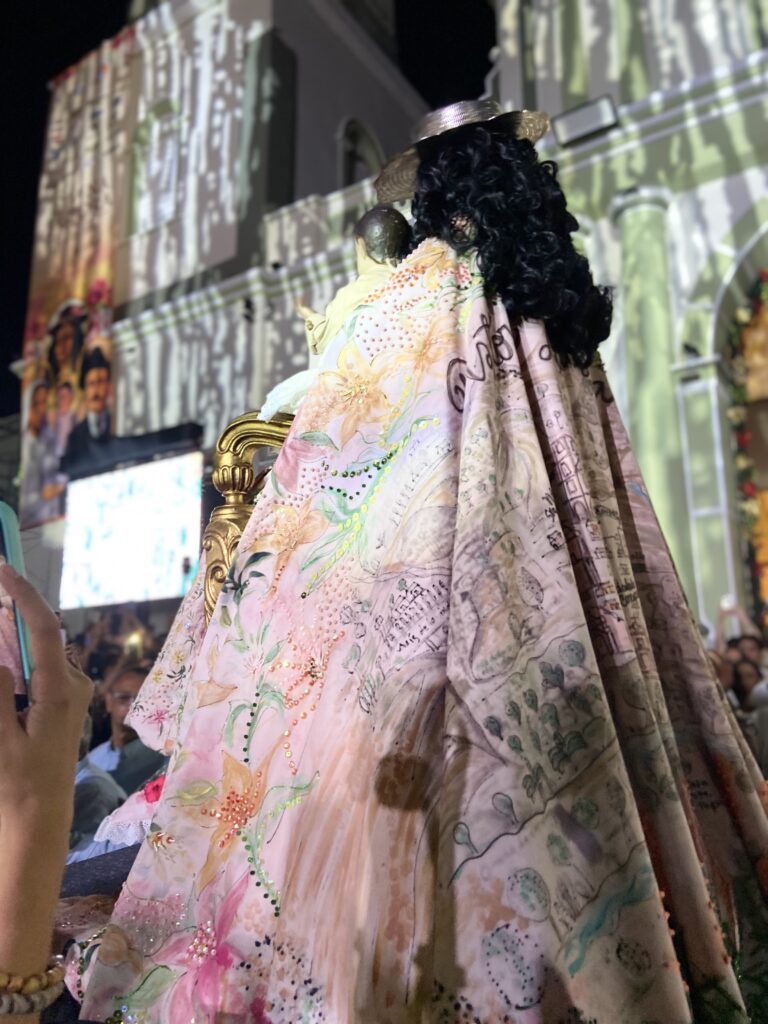 Este año, la sagrada imagen luce un atuendo evoca las raíces culturales del estado Lara. El vestido está inspirado en los bailes tradicionales de El Tocuyo, con detalles que homenajean la identidad y el folklore local.