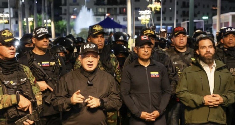 Acompañado por funcionarios del Servicio Bolivariano de Inteligencia Nacional (SEBIN) y de la Dirección General de Contrainteligencia Militar (DGCIM), aseguró que Venezuela se encuentra en total tranquilidad.
