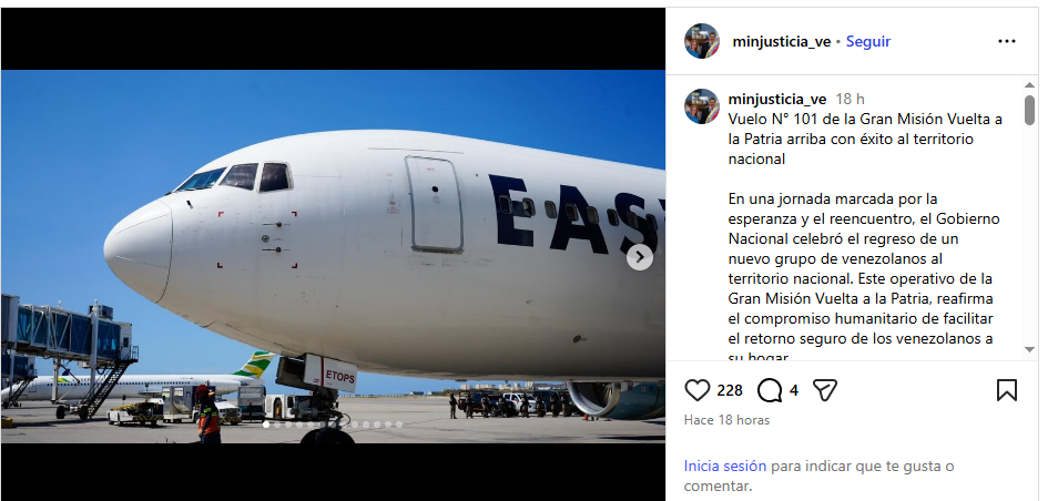 Un grupo de 183 venezolanos regresaron en un vuelo de repatriación desde EE.UU., informó este jueves el programa gubernamental Gran Misión Vuelta a la Patria.