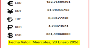 BCV. Tipo de cambio oficial para transacciones del martes 27 de enero de 2026 26 de enero de 2026 - 5:30 pm Economia, Noticias 155 Vistas BCV tipo de cambio bs / $ 2026-01-26 Javier Caceres Compartir Facebook Twitter LinkedIn Pinterest