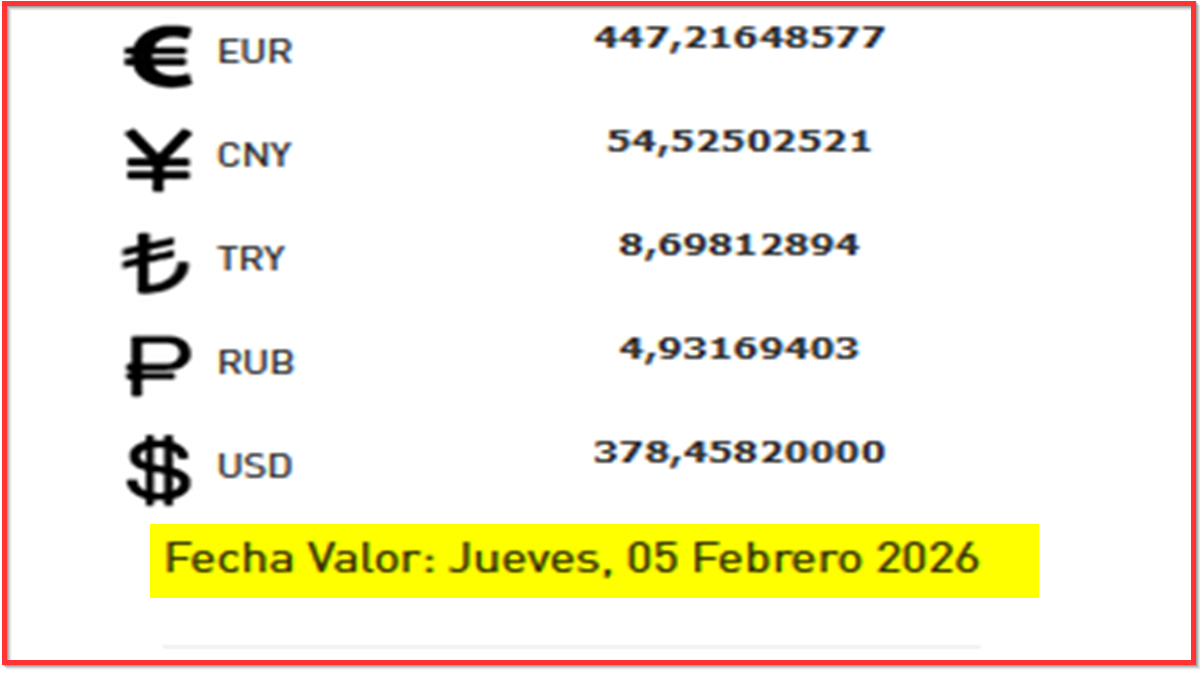 BCV. Tipos de cambio oficial para transacciones del jueves 5 de febrero de 2026 Javier Caceres hace 5 horas