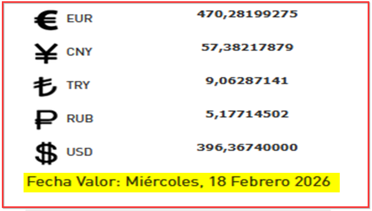 BCV. Tipo de cambio oficial para transacciones desde el sábado 14 al miércoles 18 de febrero de 2026 por asueto de Carnaval 13 de febrero de 2026 - 5:28 pm Economia, Noticias 60 Vistas 2026-02-13 Javier Caceres Compartir Facebook Twitter LinkedIn Pinterest