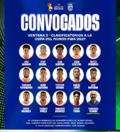 La Federación Venezolana de Baloncesto (FVB) anunció este miércoles 18 de febrero la lista oficial de los 12 jugadores que representarán al país en la segunda ventana de los Clasificatorios a la Copa del Mundo Qatar 2027.