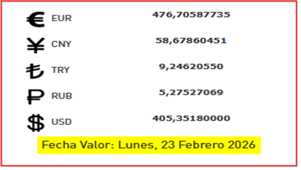 BCV. Cambio oficial para transacciones desde el sábado 21 al lunes 23 de febrero de 2026 20 de febrero de 2026 - 5:51 pm Economia, Noticias 46 Vistas 2026-02-20 Javier Caceres Compartir Facebook Twitter LinkedIn Pinterest