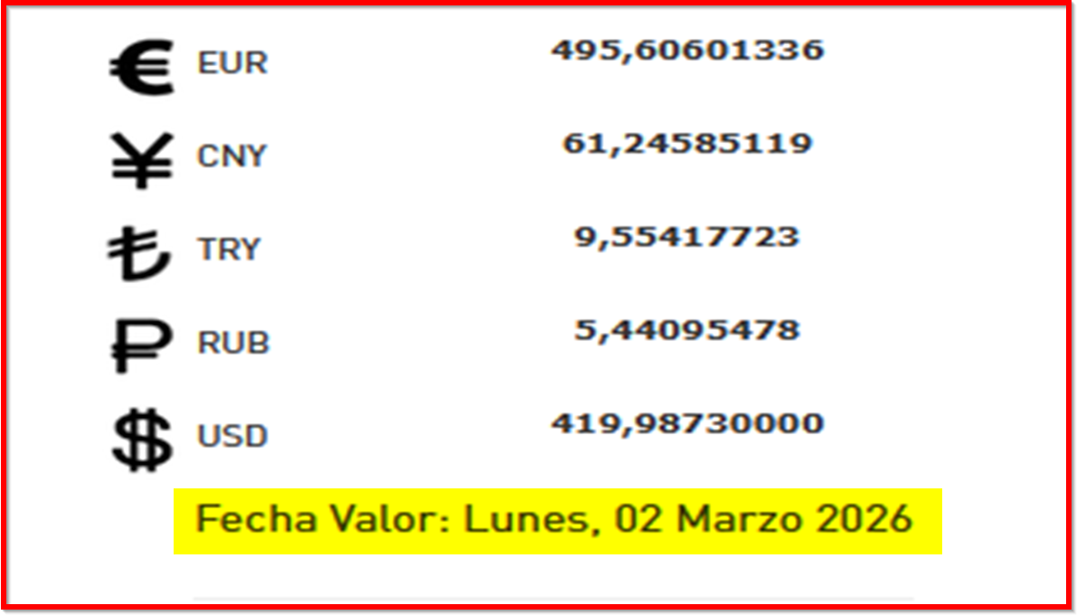 BCV. Cambio oficial de referencia para transacciones desde el sábado 28 de febrero hasta el lunes 2 de marzo 2026 Javier Caceres hace 4 horas
