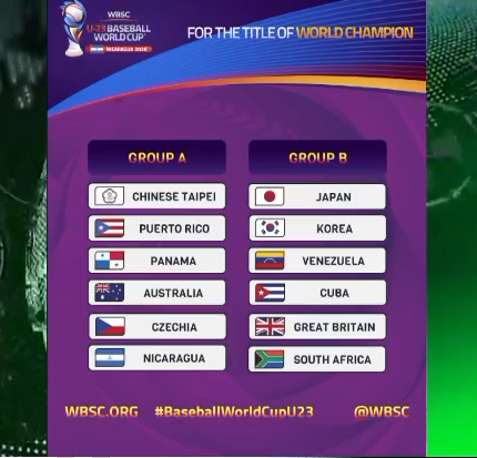 La Confederación Mundial de Béisbol y Sóftbol (WBSC) dio a conocer este jueves los grupos del Mundial de Béisbol U23, que se llevará a cabo entre el 6 y el 15 de noviembre en Nicaragua.