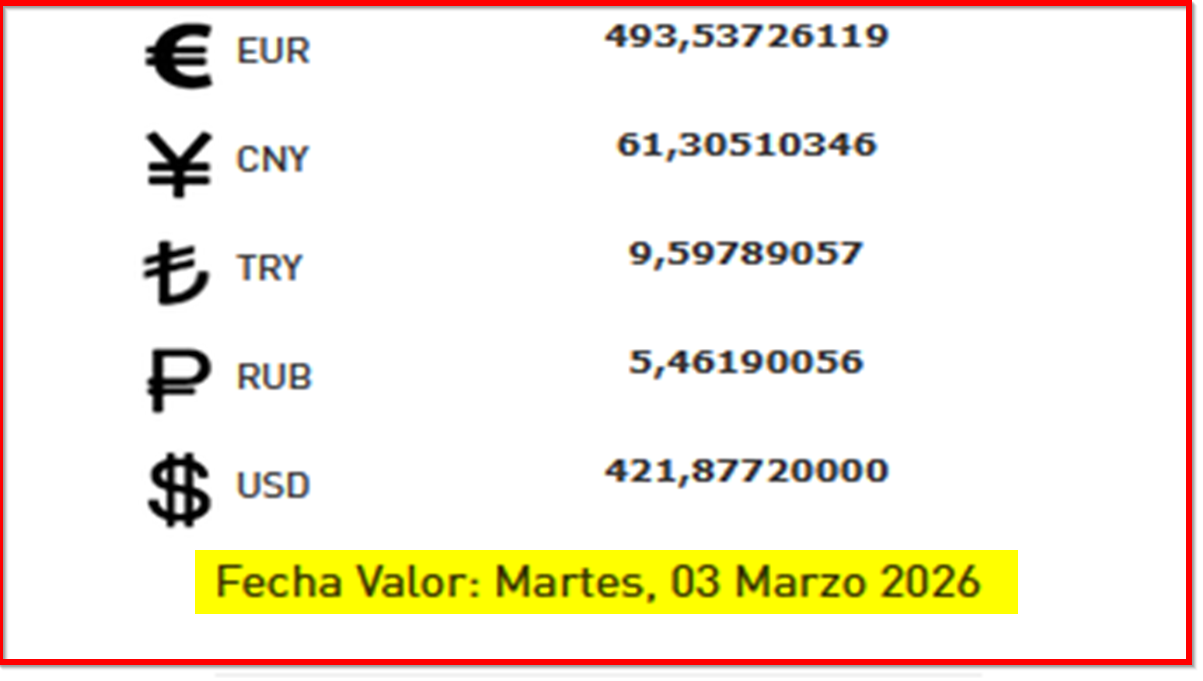 BCV. Tipo de cambio referencial para transacciones del 3 de marzo del 2026 02 de marzo de 2026 - 7:06 pm Economia, Noticias 56 Vistas 2026-03-02 Javier Caceres Compartir Facebook Twitter LinkedIn Pinterest