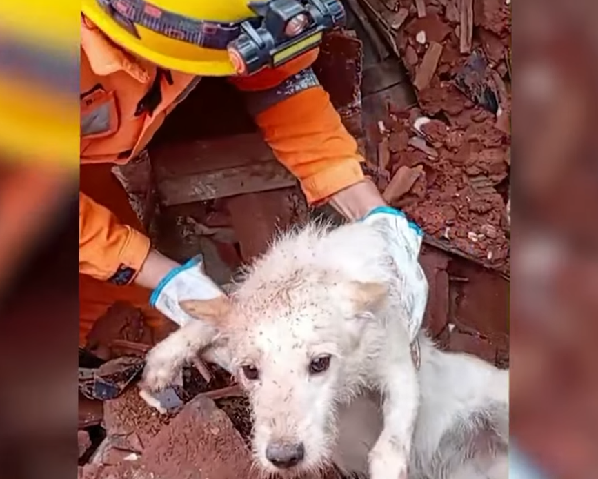 Paquito, un pequeño perro de pelaje blanco y negro, fue rescatado en una zona de alto riesgo dos días después de torrenciales lluvias que dejaron más de 50 muertos en Brasil.