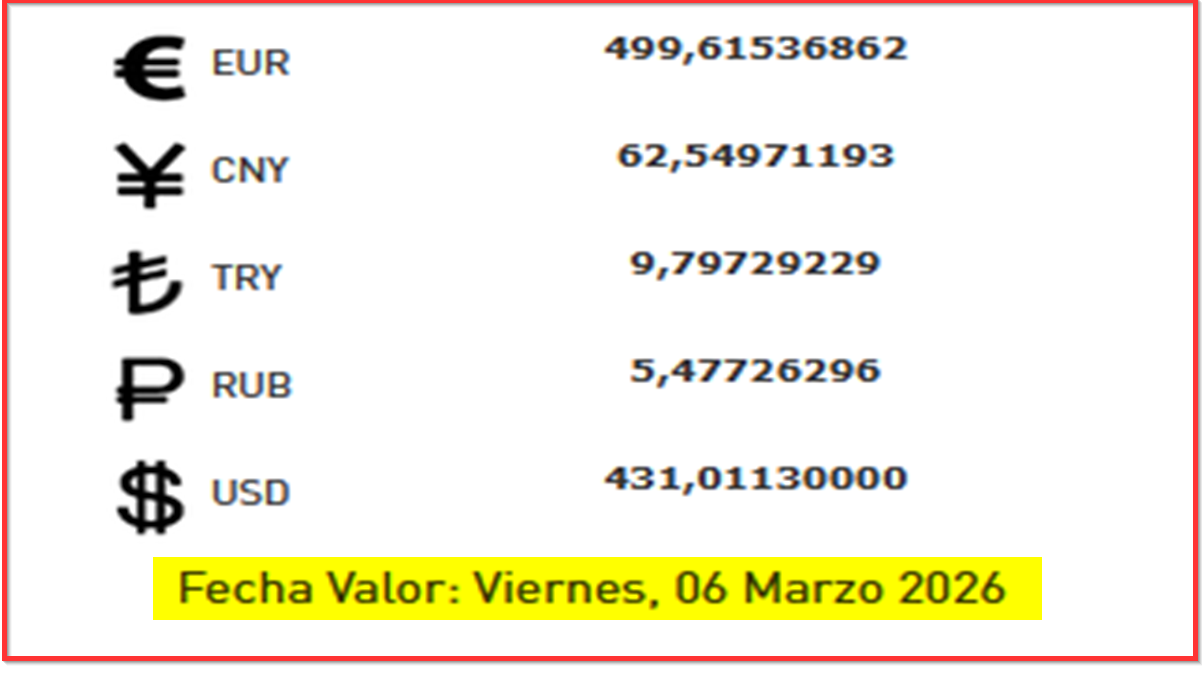 BCV. Tipo de cambio referencial para transacciones del viernes 6 de marzo 2026 05 de marzo de 2026 - 6:28 pm Economia 56 Vistas 2026-03-05 Javier Caceres Compartir Facebook Twitter LinkedIn Pinterest