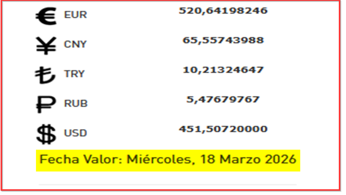 BCV. Tipo de cambio referencial para transacciones del miércoles 18 de marzo de 2026 17 de marzo de 2026 - 6:23 pm Economia, Noticias 47 Vistas 2026-03-17 Javier Caceres Compartir Facebook Twitter LinkedIn Pinterest