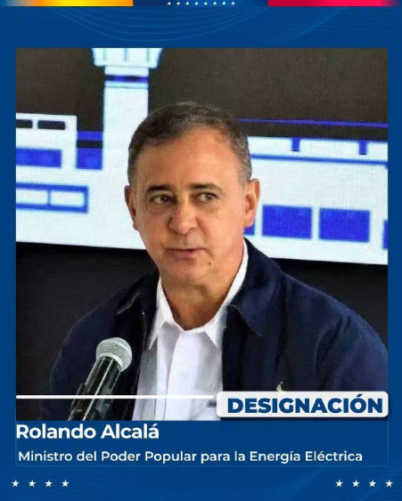 El ingeniero electricista de la Universidad Simón Bolívar, Rolando Alcalá, fue designado como nuevo ministro del Poder Popular para Energía Eléctrica en sustitución del M/G Jorge Márquez Monsalve.