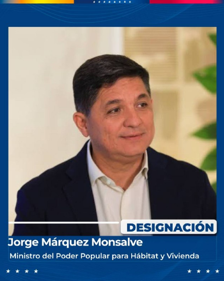 Designó a Jorge Márquez Monsalve como nuevo ministro del Poder Popular para Hábitat y Vivienda.