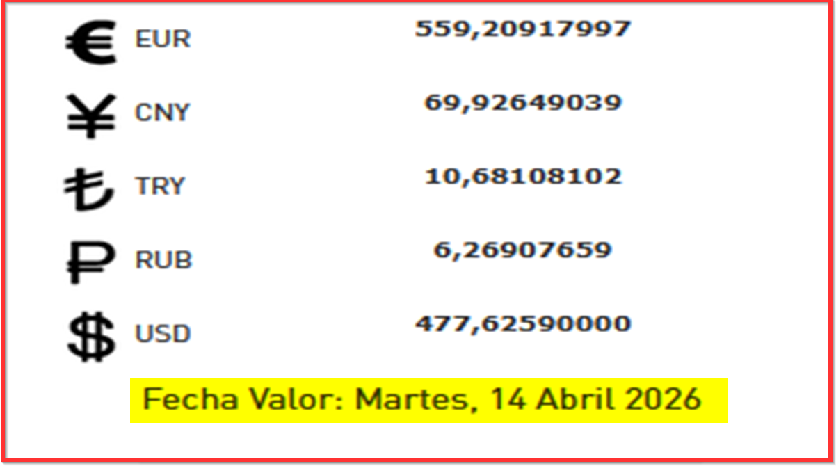BCV. Tipo de cambio de referencia para transacciones del martes 14 de abril 2026 13 de abril de 2026 - 5:42 pm Economia, Noticias 117 Vistas 2026-04-13 Javier Caceres Compartir Facebook Twitter LinkedIn Pinterest