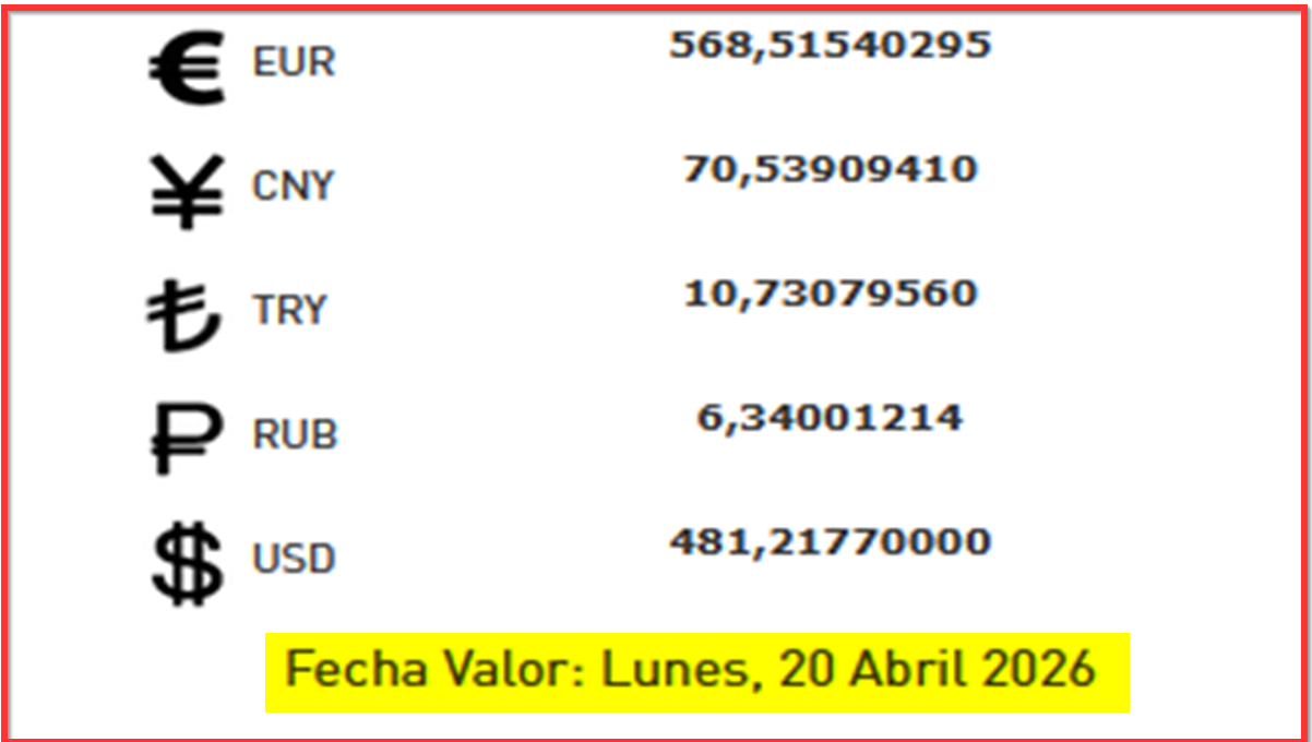 BCV. Tipo de cambio de referencia para transacciones desde el sábado 18 al lunes 20 de abril 17 de abril de 2026 - 6:41 pm Economia, Noticias 58 Vistas 2026-04-17 Javier Caceres Compartir Facebook Twitter LinkedIn Pinterest