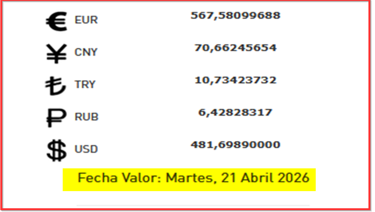 BCV. Tipo de cambio de referencia para transacciones del martes 21 de abril 2026 20 de abril de 2026 - 6:35 pm Economia, Noticias 65 Vistas 2026-04-20 Javier Caceres Compartir Facebook Twitter LinkedIn Pinterest