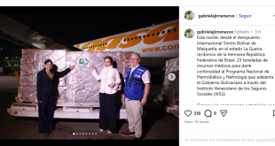 23 toneladas de insumos médicos llegaron al estado La Guaira como parte de ayuda del Gobierno de Brasil para el Programa Nacional de Hemodiálisis y Nefrología. La Ministra de Ciencia y Tecnología, Gabriela Jiménez, señaló que los medicamentos cubrirán la atención de más de 9 mil pacientes renales. «Esta noche, desde el Aeropuerto Internacional Simón Bolívar de Maiquetía, en el estado …