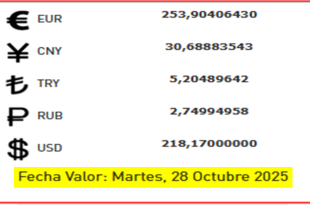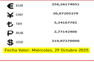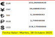 BCV. Cambio oficial para transacciones del martes 28 de octubre de 2025