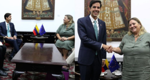 El viceministro para Europa y Norteamérica, Oliver Blanco, sostuvo un encuentro de trabajo con la encargada de negocios de la Unión Europea en Venezuela, María Antonia Calvo Puerta, con el propósito de evaluar y fortalecer los mecanismos de cooperación entre ambas naciones. El diálogo se centró en identificar áreas de interés común que permitan profundizar la relación institucional. Blanco, subrayó …